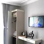 Le camere del Good Night Hotel sono dotate non solo di una cassetta di sicurezza, servizi per la preparazione di tè/caffè e una TV a schermo piatto con canali satellitari, ma offrono anche un bagno con WC separato e una doccia nei bagni. Gli ospiti possono usufruire della possibilità di stirare e un impianto di climatizzazione, nonché di un mini bar e servizi per la preparazione di tè/caffè.